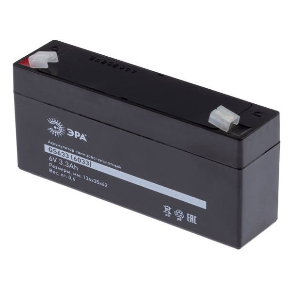 Аккумулятор свинцово-кислотный ЭРА GS633, 6 Вольт емкостью 3,3А. Б0050075