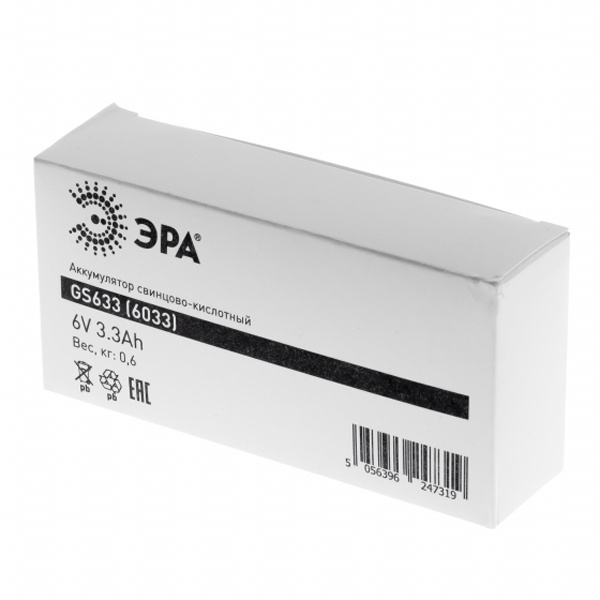 Б0050075 Аккумуляторная батарея ЭРА GS633 6V 3,3 А/ч 134х35х62мм (Свинцово-кислотный) 5056396247319