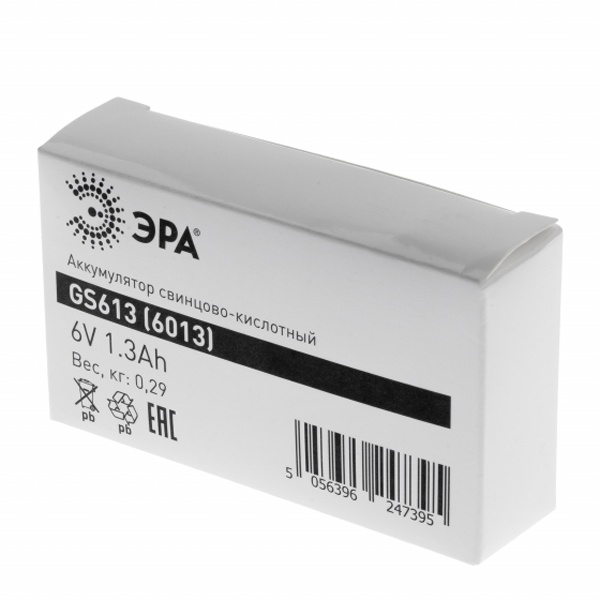 Б0050079 Аккумуляторная батарея ЭРА GS613 6V 1,3 А/ч 97х25х52мм (Свинцово-кислотный) 5056396247395