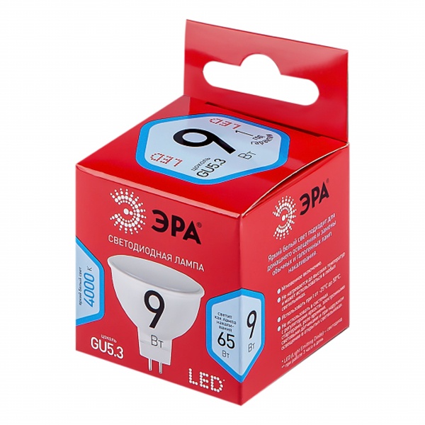 • Лампа светодиодная ЭРА LED RED LINE MR16-9W-840-GU5.3 4000K 220V холодный свет