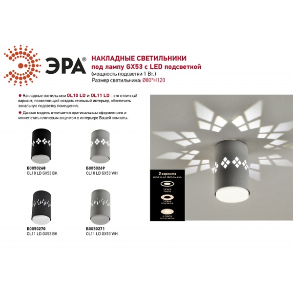 Светильники имеют три варианта включения: только лампа, только подсветка, лампа + подсветка.