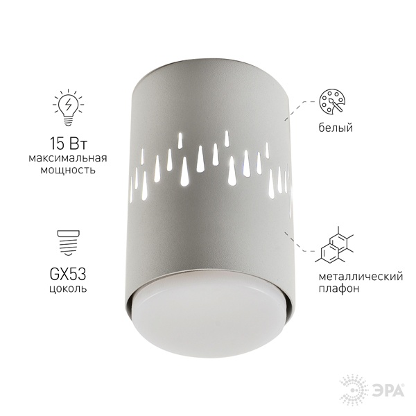 Светильник направленного света с подсветкой, накладного монтажа ЭРА под лампу с цоколем GX53 максимальной мощностью 15 Ватт, цвет белый Б0050271