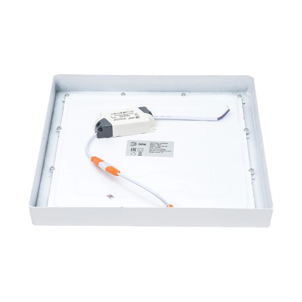 Накладной LED светильник Эра со встроенным драйвером квадратной формы белого цвета для использования внутри помещений, мощностью 24 Ватт цветовой температурой 4000К. Б0050274