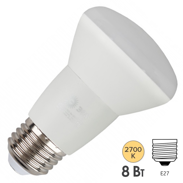 Лампочка светодиодная ЭРА RED LINE ECO LED R63-8W-827-E27 Е27 / Е27 8Вт рефлектор теплый белый свет