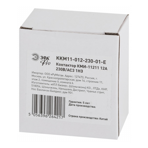 • Контактор силовой ЭРА PRO КМИ-11211 3P 1НЗ 12А катушка 230В AC