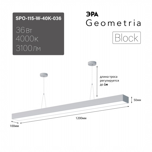 Осветительный LED прибор подвесного монтажа ERA Геометрия Блок, мощностью 36 Ватт, нейтральный белый свет, белого цвета Б0050546