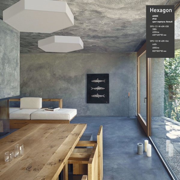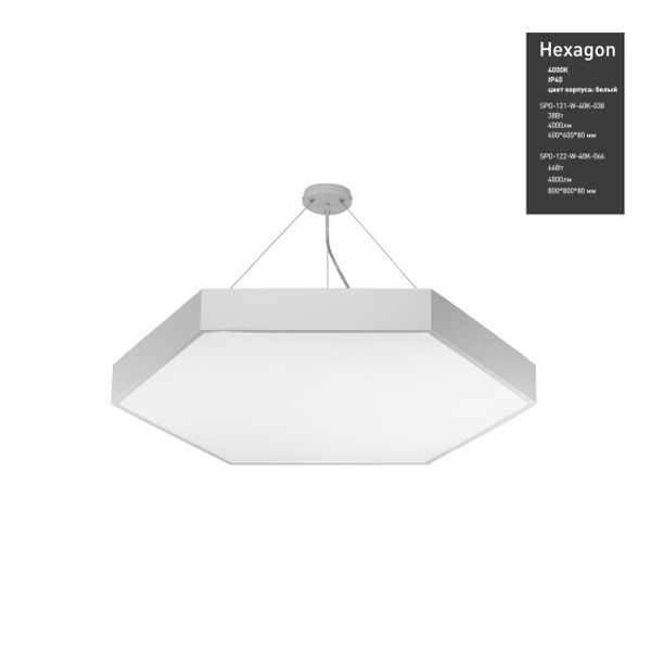 Осветительный LED прибор подвесного монтажа ERA Геометрия Гексагон, шестиугольной формы, мощностью 38 Ватт, нейтральный белый свет, белого цвета Б0050550