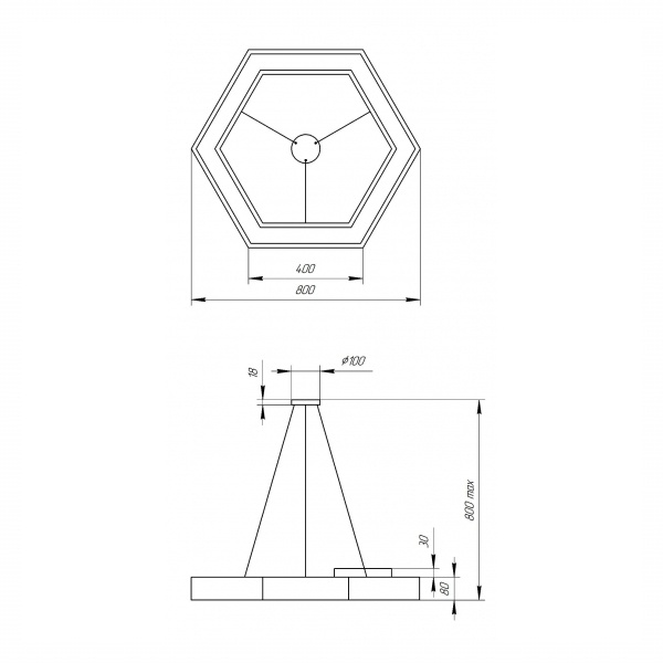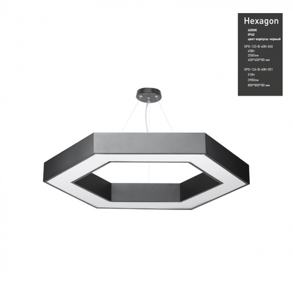Осветительный LED прибор подвесного монтажа ERA Геометрия Гексагон, шестиугольной формы, мощностью 51 Ватт, нейтральный белый свет, черного цвета Б0050557