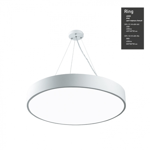 Осветительный LED прибор подвесного монтажа ERA Геометрия Ринг, круглой формы, мощностью 88 Ватт, нейтральный белый свет, белого цвета Б0050560