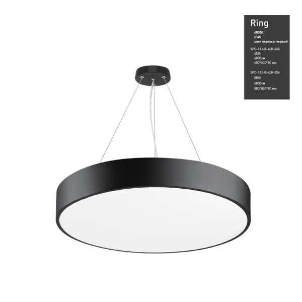 Осветительный LED прибор подвесного монтажа ERA Геометрия Ринг, круглой формы, мощностью 88 Ватт, нейтральный белый свет, черного цвета Б0050561