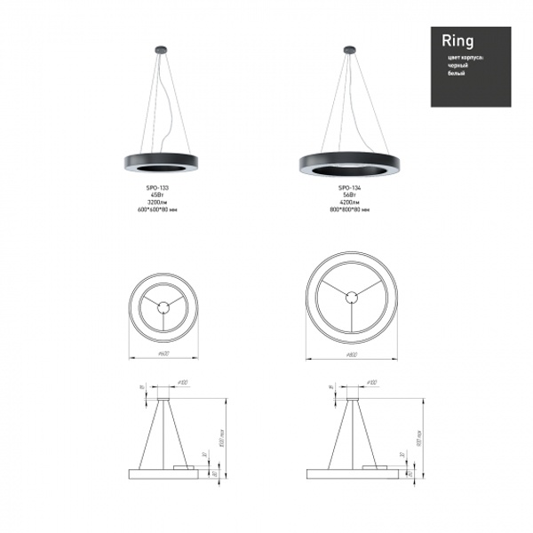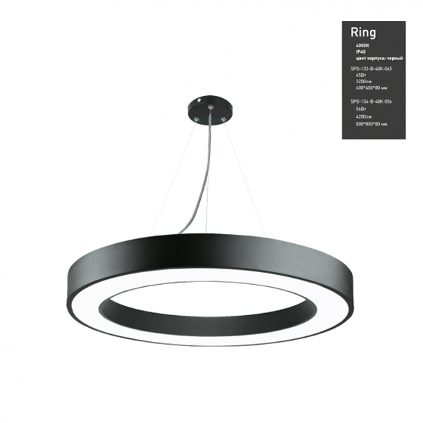 Осветительный LED прибор подвесного монтажа ERA Геометрия Ринг, круглой формы, мощностью 56 Ватт, нейтральный белый свет, черного цвета Б0050565