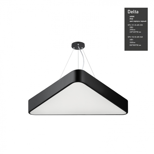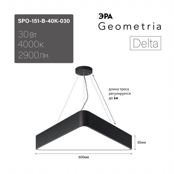 Осветительный LED прибор подвесного монтажа ERA Геометрия Дельта, треугольной формы, мощностью 30 Ватт, нейтральный белый свет, черного цвета Б0050575