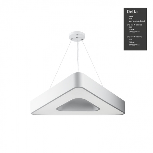 Осветительный LED прибор подвесного монтажа ERA Геометрия Дельта, треугольной формы, мощностью 42 Ватта, нейтральный белый свет, белого цвета Б0050580