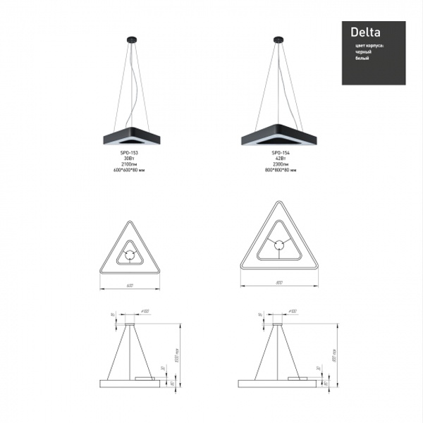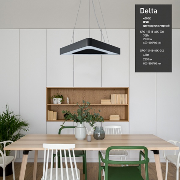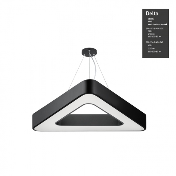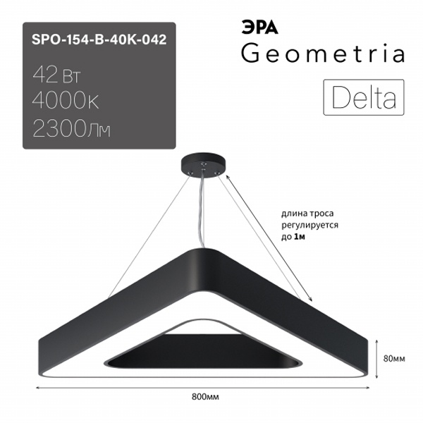 Осветительный LED прибор подвесного монтажа ERA Геометрия Дельта, треугольной формы, мощностью 42 Ватта, нейтральный белый свет, черного цвета Б0050581