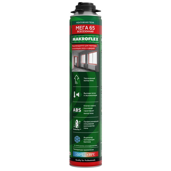 Высококачественная однокомпонентная, отверждаемая за счет реакции с влагой воздуха, полужесткая полиуретановая пена с увеличенным выходом, может применяться при температуре окружающей среды от -10С до +30С. Наносится при помощи специального монтажного пистолета.