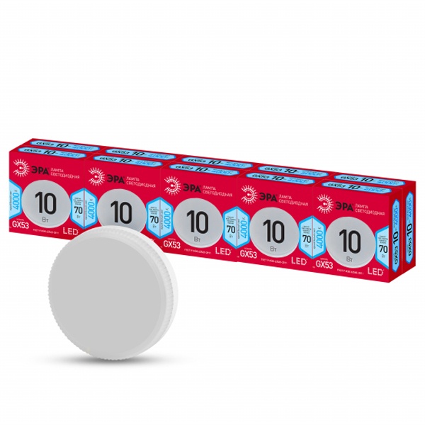 Б0050605 Лампа светодиодная таблетка ЭРА RED LINE GX 10W 840 4000K 220V GX53 холодный свет фото 1