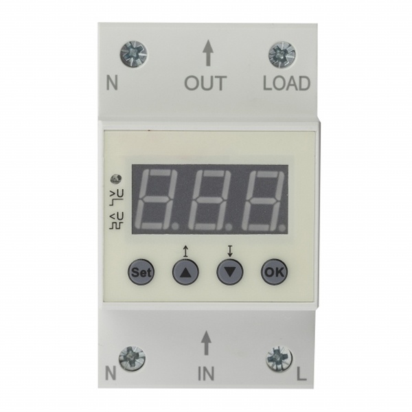 Реле контроля напряжения РКН-1 63А предназначен для для автоматического отключения подключенной через него нагрузки, если значение напряжения в электросети выйдет за установленные пределы. Прибор управляется микроконтроллером, который анализирует напряжение в электросети и отображает его действующее значение на цифровом индикаторе. Коммутация нагрузки осуществляется электромагнитным реле. Допустимые пределы отключения и время задержки включения устанавливаются пользователем с помощью кнопок. Значения сохраняются в энергонезависимой памяти.