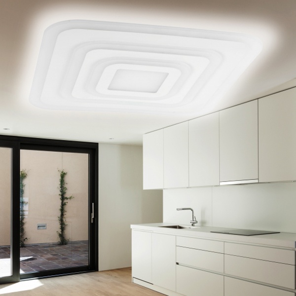 Интересной особенностью этого LED светильника является возможность выбора цветовой температуры от 3400 до 5500К – теперь Вам будут доступны холодные или теплые оттенки без покупок новых лампочек. Мягкое изменение яркости позаботится о глазах: за счет этого Вы легко привыкните к новым световым условиям. У светодиодной потолочной люстры также имеется «Ночной режим», который практически выключит прибор, убирая яркость до минимума.