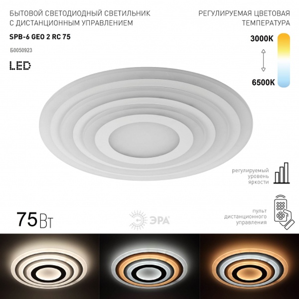 Диммируемый LED светильник потолочного исполнения Эра GEO-2 с пультом дистанционного управления, мощностью 75 Ватт Б0050923