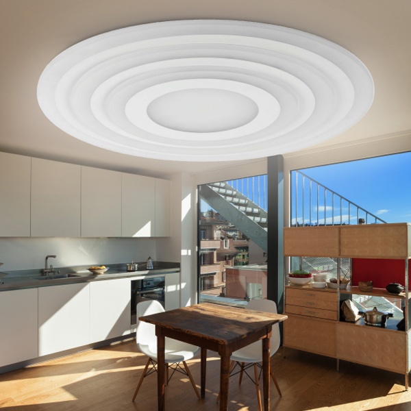 Интересной особенностью этого круглого потолочного светильника является не только его оформление, но и возможность выбора цветовой температуры от 3400 до 5500К. Кроме того, он оснащен мягким изменением яркости – так Вы быстро и легко привыкните новым световым условиям. У светодиодной потолочной люстры также имеется «Ночной режим», который практически выключает прибор, убирая яркость до минимума. GEO 2 – это практичная идея для дома, которая избавит Вас от мук выбора лампочек и их многочисленных покупок. Позаботьтесь о своей комфортной жизни – выберите стиль и удобство!