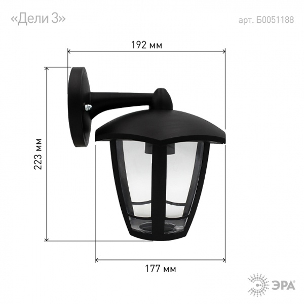 Б0051188 Светильник садово-парковый ЭРА НБУ 07-40-004 Дели3 черный настенный вниз E27 IP44(У1) 6 граней