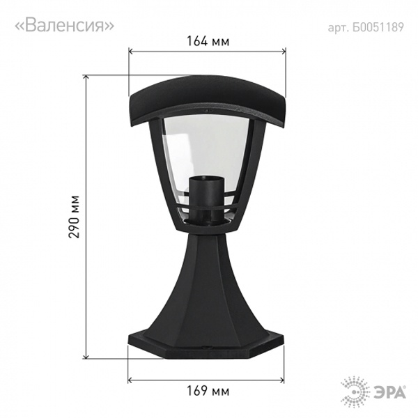 Светильник садово-парковый 4гран. черн. напольный 29см E27 IP44(У1) НТУ 07-40-001 "Валенсия" ЭРА Б0051189