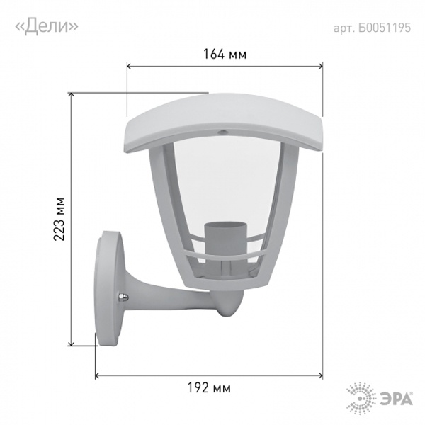 Б0051195 Светильник садово-парковый ЭРА НБУ 07-40-001 Дели белый настенный вверх E27 IP44(У1) 4 грани