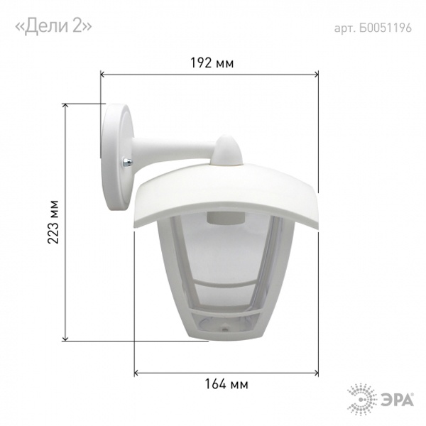 • Светильник садово-парковый ЭРА НБУ 07-40-002 Дели2 белый настенный вниз E27 IP44(У1) 4 грани