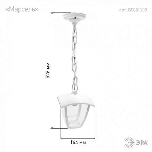 Светильник садово-парковый ЭРА НСУ 07-40-001 Марсель белый подвесной E27 IP44(У1) 4 грани Б0051203