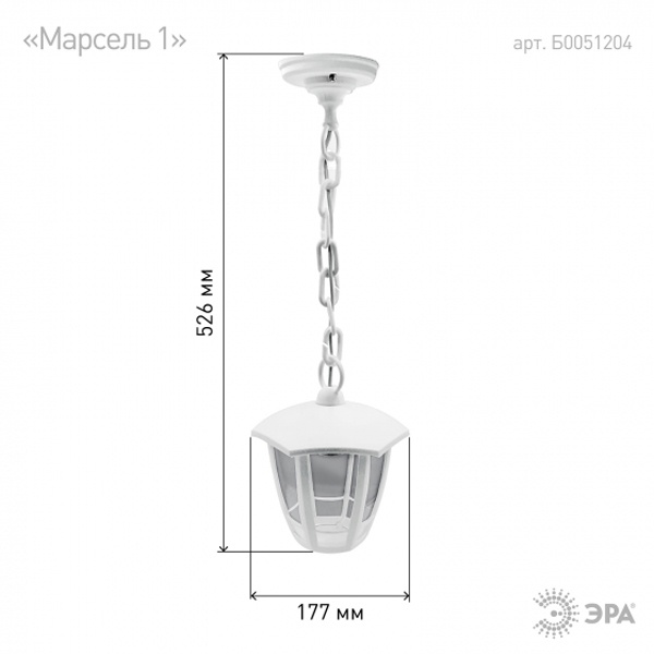 Светильник садово-парковый 6гран. бел. подвесной E27 IP44(У1) НСУ 07-40-002 "Марсель 1" ЭРА Б0051204