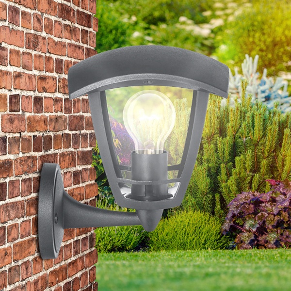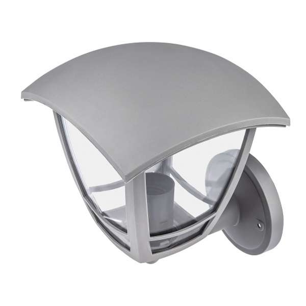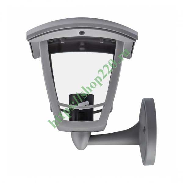 Осветительный, фасадный, четырехгранный прибор настенного монтажа под лампу с цоколем E27 максимальной мощностью 40 Ватт, высота 223 мм, прозрачный рассеиватель, серого цвета Б0051205