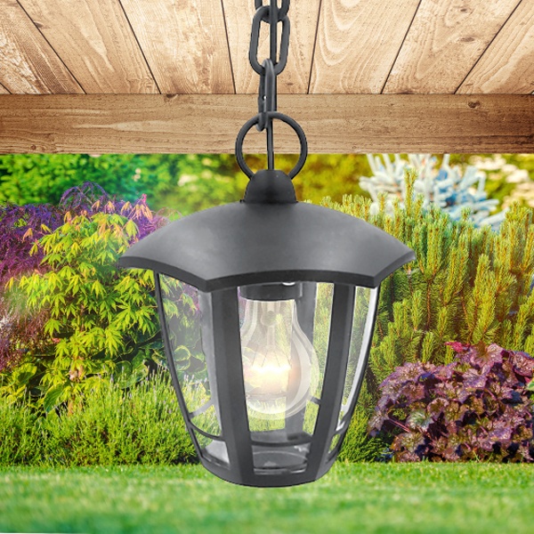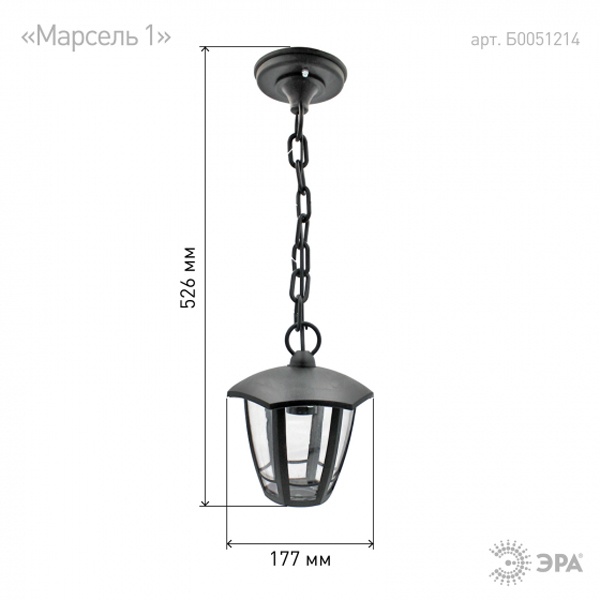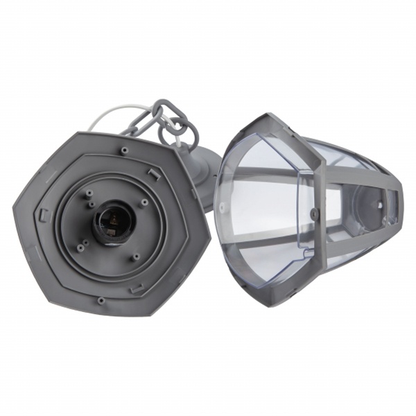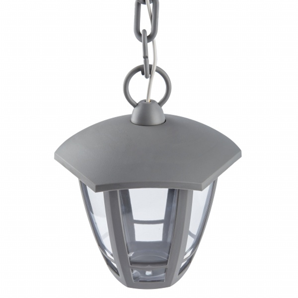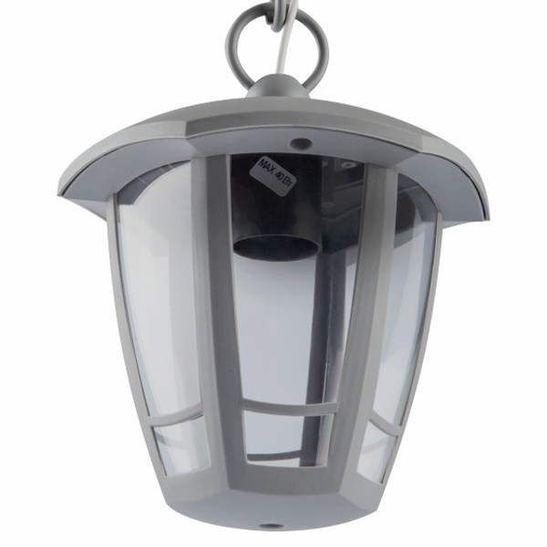Осветительный, фасадный, шестигранный прибор на подвесе под лампу с цоколем E27 максимальной мощностью 40 Ватт, высота с подвесом 526 мм, прозрачный рассеиватель, серого цвета Б0051214