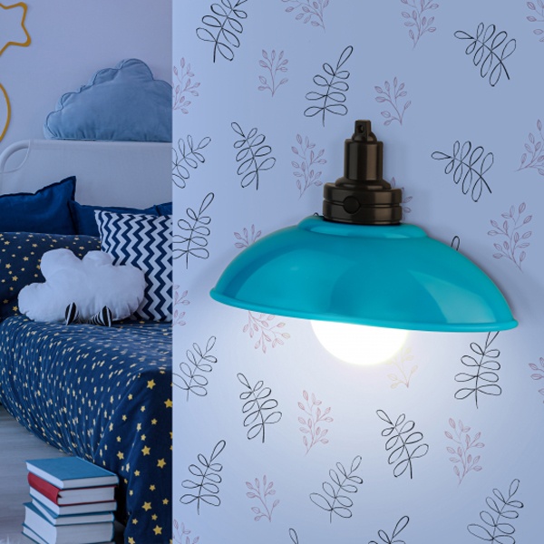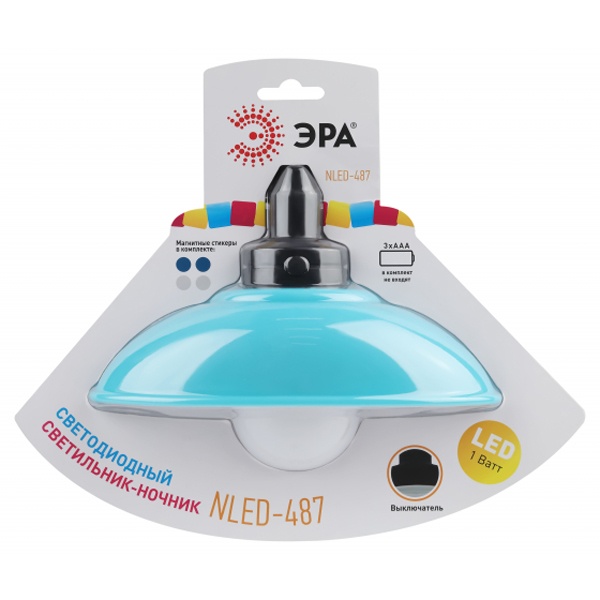Автономный голубой LED светильник-ночник на стену ЭРА NLED-487-1W-SW-BU, с выключателем на корпусе, источник питания 3хААА Б0051475