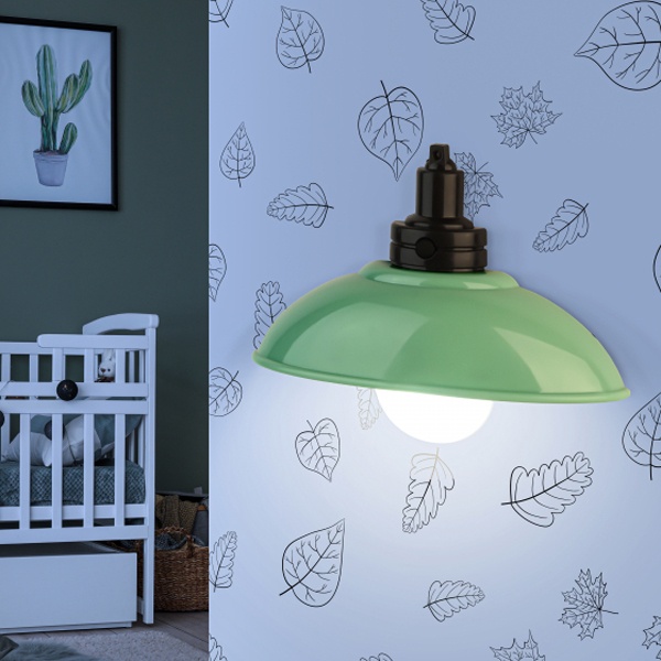 Автономный зеленый LED светильник-ночник на стену ЭРА NLED-487-1W-SW-GR, с выключателем на корпусе, источник питания 3хААА Б0051476