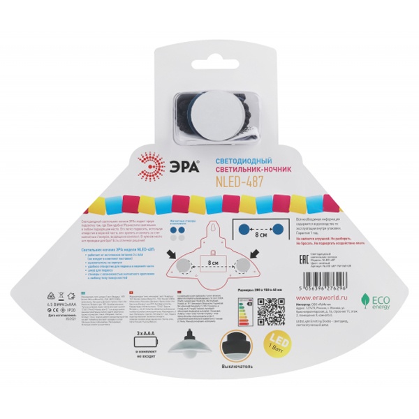 Дизайн корпуса ночника выполнен в форме подвесного светильника в стиле ретро. Светильник автономный, работает от элементов питания 3 х ААА (не входят в комплект поставки). Светильник легко крепится к любому типу поверхностей и легко снимается для подзарядки благодаря магнитным стикерам, входящим в комплект. Светильник можно подвесить при помощи шнура длиной 1 м (в комплекте): в верхней части светильника имеется удобное отверстие для подвеса. Светодиодный светильник-ночник ЭРА станет отличным элементом декора и создаст яркую подсветку там, где Вам удобно! Легкий доступ к батарейкам для замены. Поставляется в блистерной упаковке с евроотверстием.