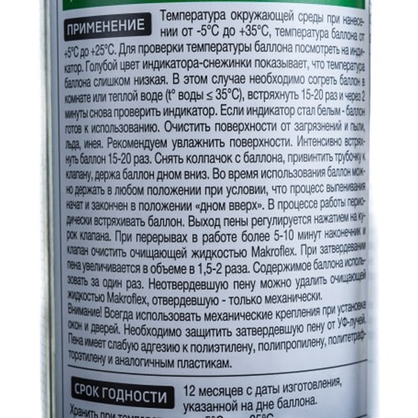 - Индикатор температуры баллона - отличные результаты благодаря соблюдению правильного температурного режима применения пены