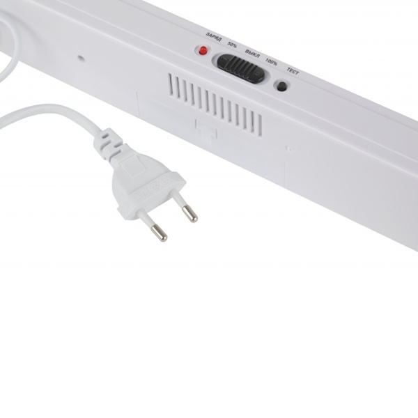 Режим работы: только от аккумулятора(непостоянного действия)Наличие эвакуационого знака: нетНоминальная мощность: 12 ВаттВремя работы в полном режиме: 2 чВремя работы в экономичном режиме: 4 чКоличество светодиодов: 120 штСветовой поток: 340 лмСтепень защиты: IP20Световая температура: 6500КТип монтажа: настенно-потолочныйРазмеры: 482*57*30 мм