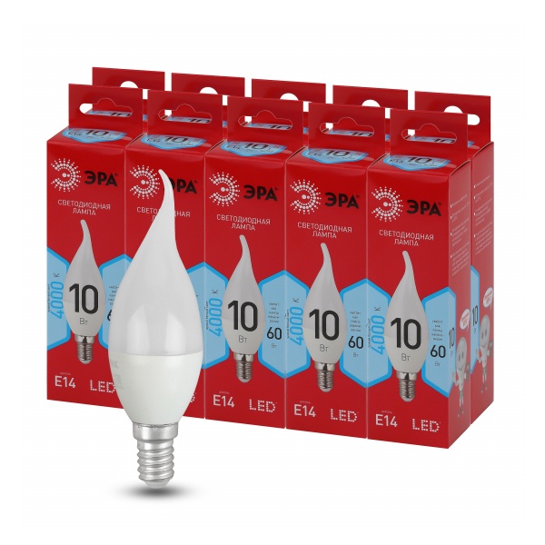 Энергосберегающая LED лампочка свеча на ветру, мощностью 10 Вт, с цоколем E14 (миньон), белый свет Б0051849