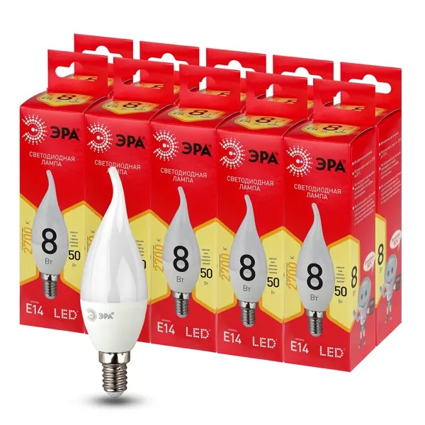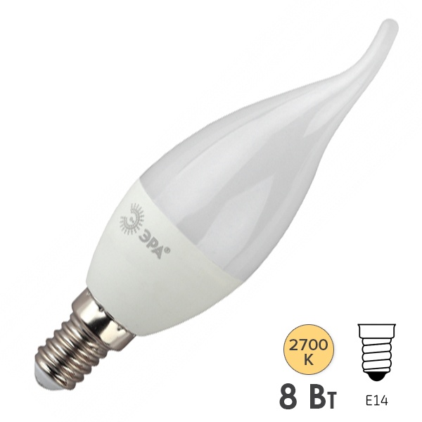 Энергосберегающая LED лампочка свеча на ветру, мощностью 8 Вт, с цоколем E14 (миньон), теплый свет Б0051853