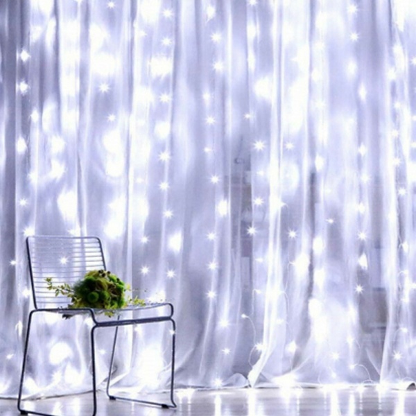 Гирлянда занавес ЭРА из 400 светодиодов холодного белого света, размер 3*2 метра, контроллер 230 Вольт с 8 режимами. Б0051875