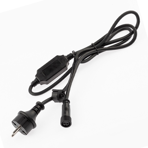 Черный питающий кабель с евровилкой и разъемом для подключения гирлянд напряжением 220 Вольт мощностью до 800 Ватт, длиной 1,5 метра Б0051881