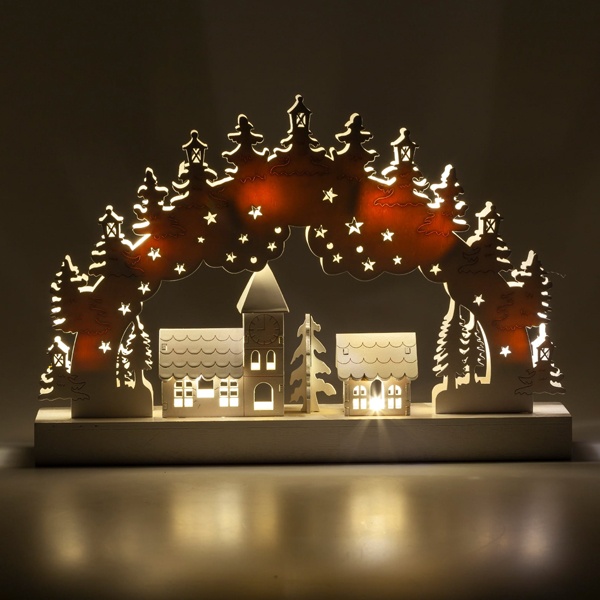 Декоративный, настольный светильник из дерева со светодиодной подсветкой EGNDS-02 Зима на батарейках Б0051929