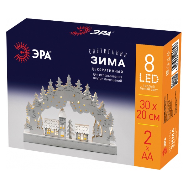 Праздничная светодиодная фигура EGNDS-02 Зима 30 x 20 см с приятным тёплым светом создаст в Вашем доме неповторимую новогоднюю атмосферу. Этот деревянный декоративный светильник украсит любую комнату, включая спальню: приглушенный свет позволяет использовать его в качестве ночника. Светильник работает от 2 батареек AA и имеет класс защиты IP20 (рекомендуется использовать внутри помещений). Настольный зимний светильник с домиками и елочками - это отличный подарок на Новый год и Рождество для любимых. Такой новогодний декор для дома всегда дарит ощущение праздника!