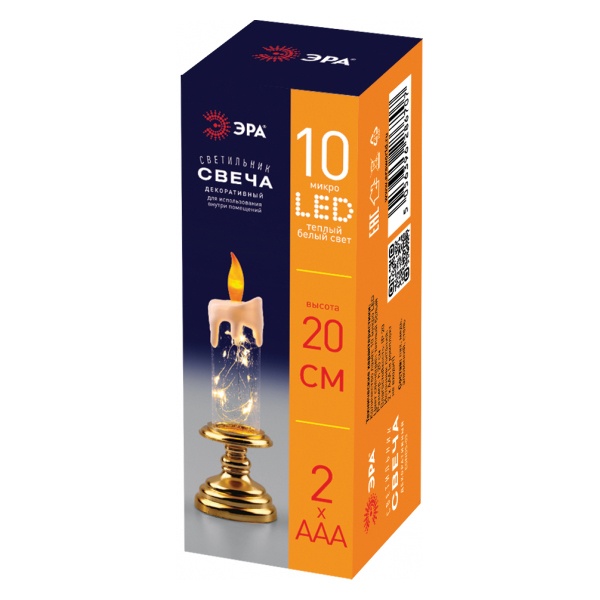 Светодиодный светильник Свеча от бренда ЭРА высотой 20 см с уютным теплым светом создаст атмосферу праздника и волшебства у Вас дома. В отличие от обычных свечей, декоративная светодиодная свеча абсолютно безопасна и станет достойным украшением стола в новогоднюю ночь! Светильник работает от 2 батареек AAA и имеет класс защиты IP20 (рекомендуется использовать внутри помещений). Фигура выполнена в виде свечи с прозрачным корпусом, внутри которого находится мини гирлянда из 10 лампочек. Этот настольный зимний светильник - прекрасный подарок для близких на Новый год и Рождество. Такой новогодний декор для дома всегда дарит невероятное ощущение праздника!