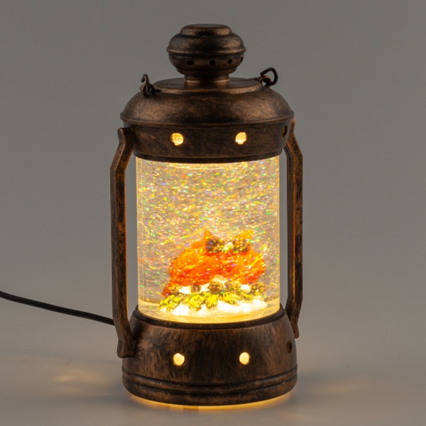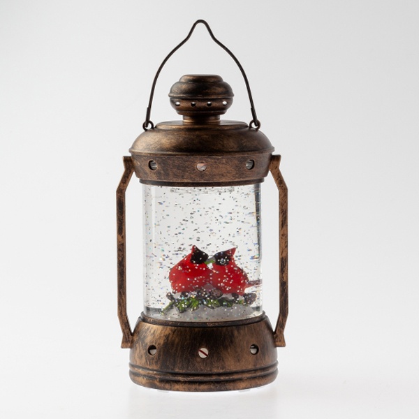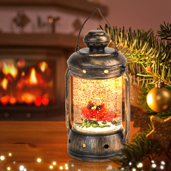 Новогодний светодиодный светильник ENGDS-12 Красный кардинал высотой 18 см от бренда ЭРА создаст у Вас дома праздничную атмосферу! Светильник-фонарик выполнен из ПВХ и окрашен под медь, внутри стекла расположены блестки, создающие эффект падающего снега. Внутри фонаря находятся фигурки двух красных кардиналов, они подсвечиваются 1 светодиодной лампочкой сверху. Декоративный светильник работает от 3 батареек АА, степень защиты IP20 (рекомендуется использовать в помещениях), автоматическое отключение через 6 часов. Он станет прекрасным украшением кухни, гостиной, а еще его можно использовать в спальне как ночник. Настольный винтажный фонарь - это необычный подарок на Новый год или Рождество, который понравится взрослым и детям. Новогодний декор для дома всегда поднимает настроение!