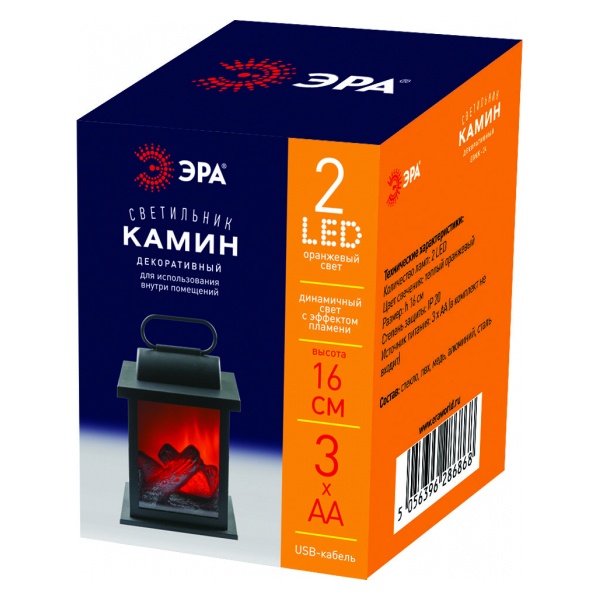Праздничный светодиодный светильник Камин высотой 16 см от компании ЭРА поможет создать дома атмосферу уюта и праздника! Корпус светильника выполнен из черного ПВХ, внутри находятся пластиковые поленья, которые подсвечиваются лампочками с динамичным теплым светом, который создает эффект пламени, внутри находятся 2 светодиодных лампочки с теплым оранжевым светом. Фонарик работает от 3 батареек AA, имеет класс защиты IP20 (использовать в помещениях). Декоративный светильник станет необычным украшением кухни или гостиной, а также можно разместить его в спальне и использовать как ночник. Мини камин - прекрасный подарок на Новый год и Рождество для любимых, ведь такой новогодний декор всегда поднимает настроение!
