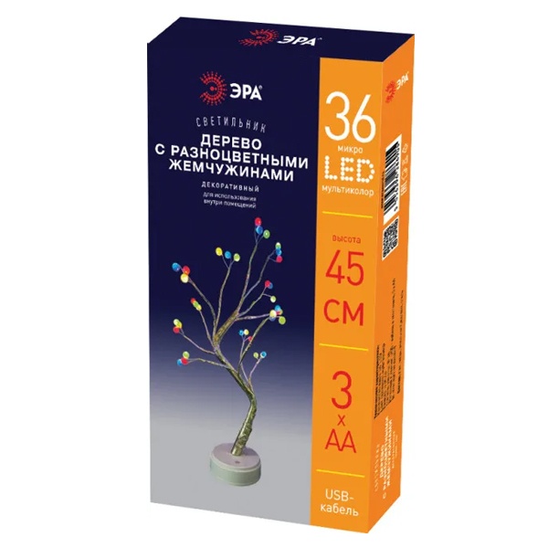 Светильник-ночник высотой 45 см в виде дерева с разноцветными жемчужинами на ветках. В каждой жемчужине светодиод нового поколения, что в сочетание с питанием от батареек делает его безопасным. 36 светодиодов светятся нежными оттенками красного, желтого, синего и зеленого цветов.
