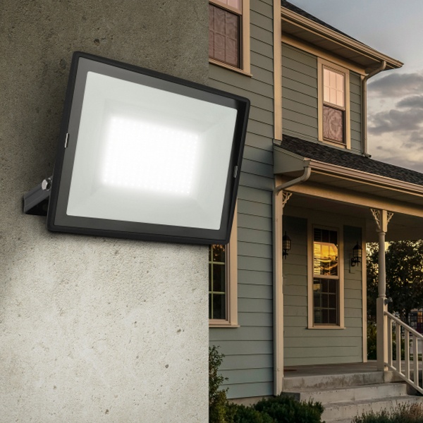 Прожектор светодиодный уличный с высоким световым потоком. Корпус -черный, изготовлен из прочного алюминия, стекло закаленное. Экономичная LED-технология сократит до 90% затрат на электроэнергию. Прожектор устойчив к механическим воздействиям, защищен от дождя и пыли, работает при широком диапазоне температур (от -40 до +45). Отличается простой и быстрой установкой: есть кронштейн специальной формы и регулировочные болты для выбора направления света. Подходит как для внутреннего, так и для наружного применения.