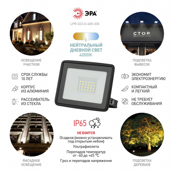 Б0052031 Прожектор светодиодный ЭРА LPR-023-0-40K-030 30W 4000K 2400Lm IP65 фото 7