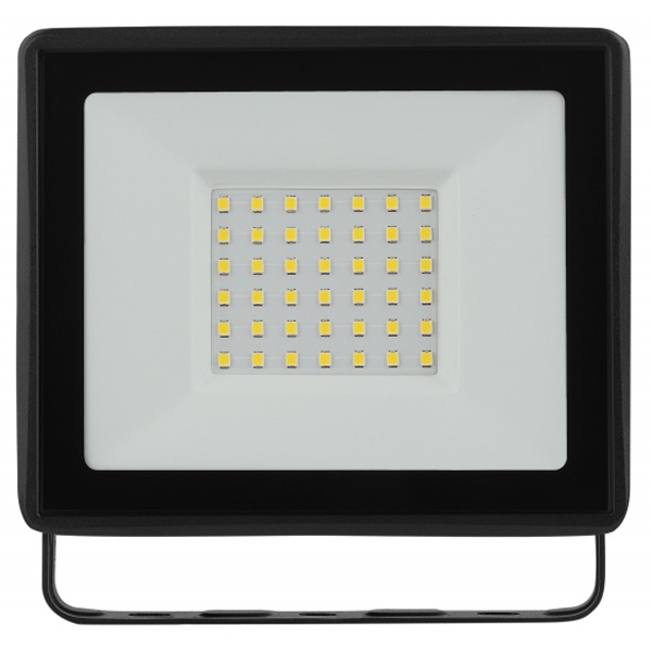 Черный компактный влагозащищенный LED прожектор Эра мощностью 50 Ватт с крепежной скобой, нейтрального белого свечения. Б0052032